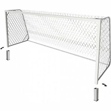 Ворота футбольные юношеские стационарные, алюминиевые (алюминиевый профиль рамы ворот 80х80 мм.) Сборно-разборная конструкция. Основание и боковые дуги ворот выполнены из стальной трубы диаметром 42 мм., покрыты цинкосодержащим грунтом и окрашены порошковой краской***. В комплект входят стальные закладные стаканы высотой 500 мм. с крышками. Усиленные угловые соединения. Цвет ворот-белый (RAL 9016).
